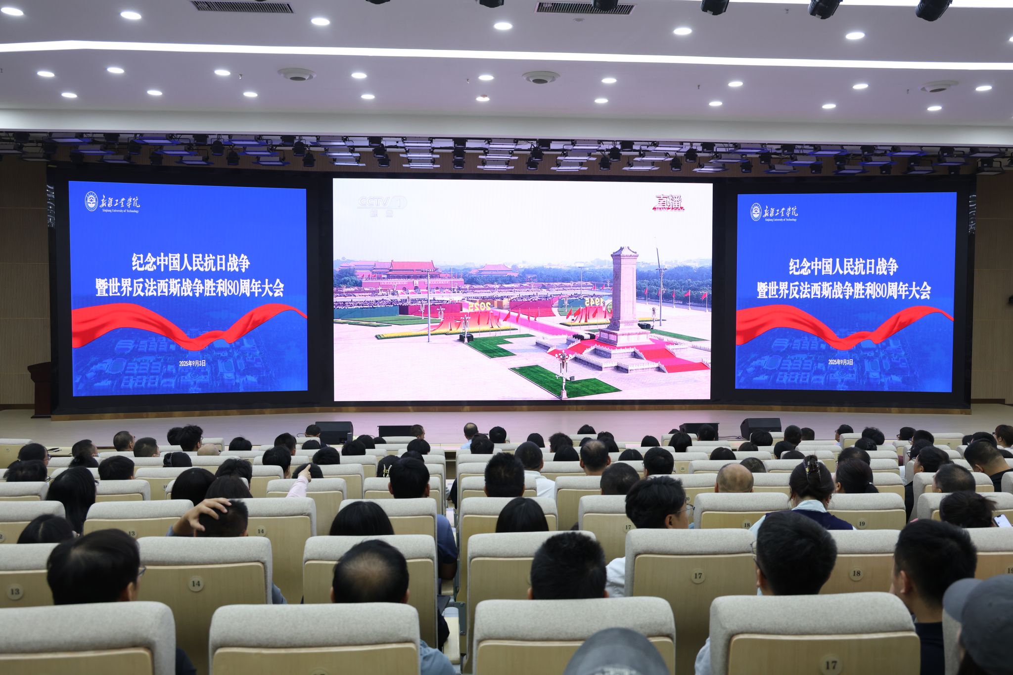 铭记历史荣光,奋进复兴伟业。9月3日,纪念中国人民抗日战争暨世界反法西斯战争胜利80周年大会在北京天安门广场隆重举行,中共中央总书记、国家主席、中央军委主席习近平出席大会并发表重要讲话。beat365中国唯一官网组织全体师生和兵勤瑞玉公司服务保障人员观看大会直播,共同见证这一庄严时刻。
