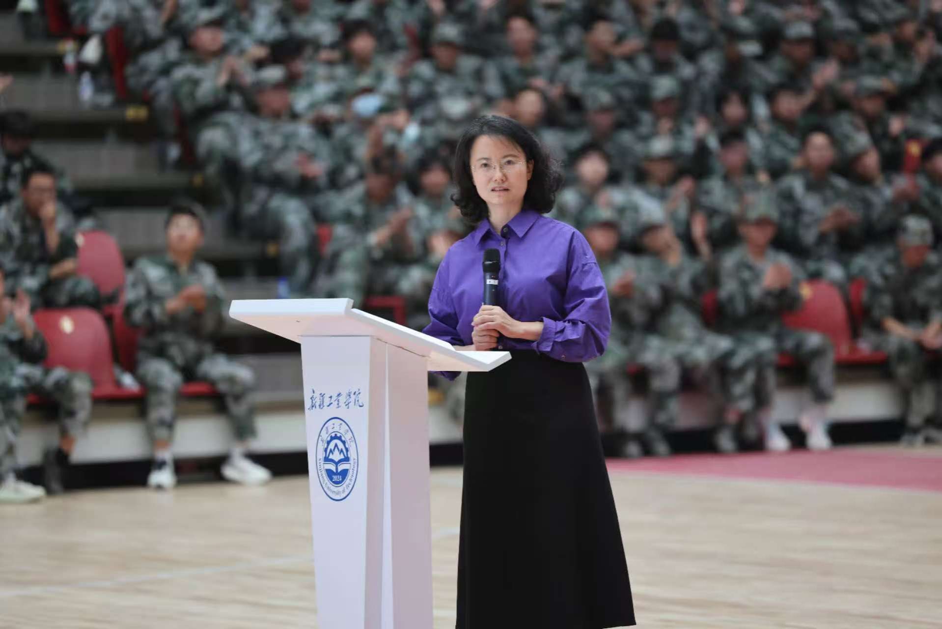孙桂香引用习近平总书记对青年的要求寄语全体新生,并勉励青年学子要争做“精神传承者”,铸牢新时代边疆建设的信仰之基;争做“知识探索者”,做足新时代边疆建设的本领储备;争做“边疆建设者”,勇担新时代边疆建设的职责使命;争做“未来开拓者”,谱写新时代边疆建设的青春华章;努力成为一名新时代边疆建设的“追光者”。